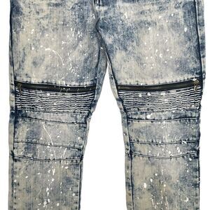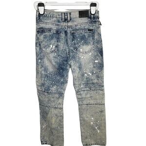 Akademiks Boys Acid Wash Moto Jeans 16 Paint Splatters Zip Pockets