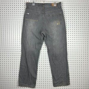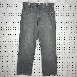 Akademiks Gray Y2K Jeans Sz 36x32 Distressed 90s Grunge Streetwear Skate Baggy