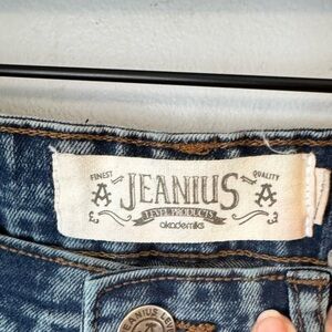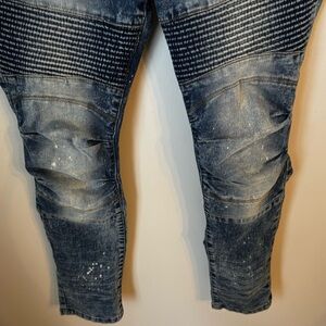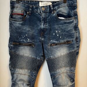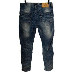 These are Akademiks Jeanius men’s size 34X30 distressed acid wash Y2K style jeans. They are dark wash, stacked and slim fit. These are pre-owned in excellent condition with no observable damage.