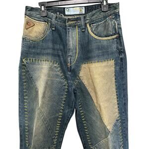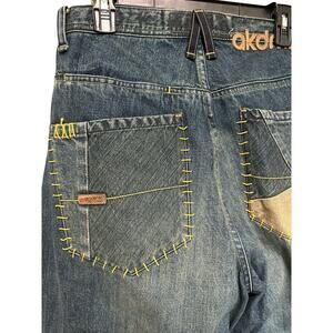 Akademiks Men Size 32X32 Patchwork stitching, baggy denim jeans 90s or Y2K era.