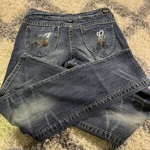Akademiks New York Womens 32 Denim Jeans Embroidered Bling Sequins Stretch