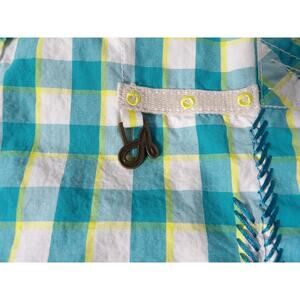 Akademiks Shirt XL Plaid Teal Yellow White Button Up Y2K Hip Hop Colorful Logo C