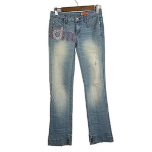 Akademiks Womens Vintage Light Wash Embroidered Bootcut Jeans Y2K Size 26