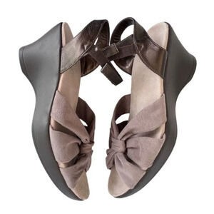 Akaishi Womens Suede Taupe Gray 3 Inch Heel Platform Sandals Adjustable Strap 10