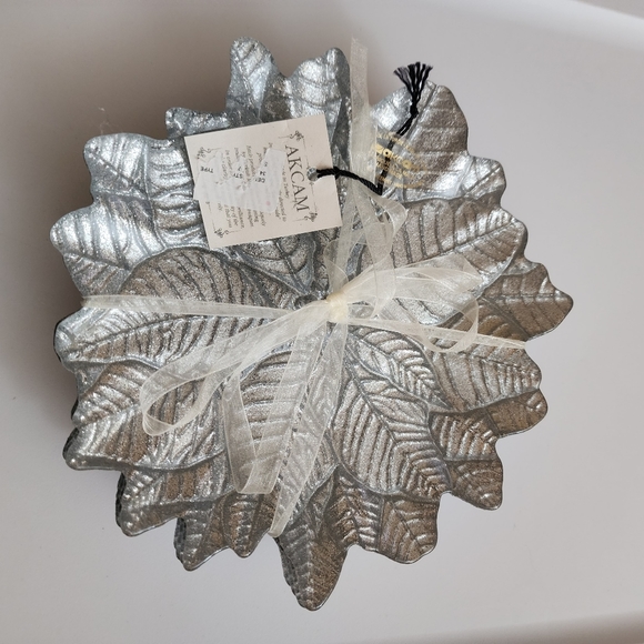Akcam Turkish Glass 8" Plates Plate Set Poinsettia Silver Glitter
