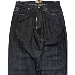wide leg jeans baggy jeans streetwear jeans dark wash jeans rhinestone jeans y2k jeans goth aesthetic mall goth street style oversized denim hip hop style retro vibe archive piece layering aesthetic rare streetwear