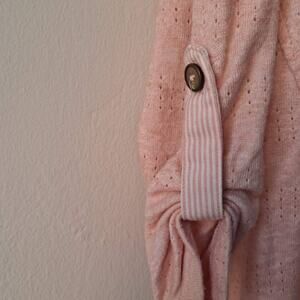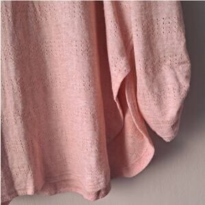 Anthropologie Akemi & Kim Peach Scoop Neck Oversized Long Convertible Sleeve Shirt Tail Perforated Tee-Shirt - Size M