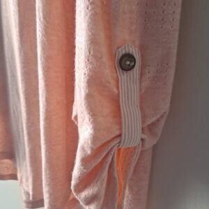 Akemi & Kim Peach Scoop Neck Long Convertible Sleeve Shirt Tail Tee-Shirt - M
