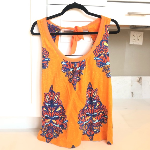 Very flattering with tie back, can still wear bra. Size XS but can accommodate larger sizes. Perfect condition, worn once.