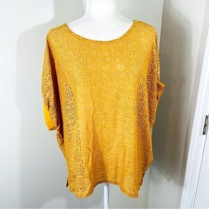 Akemi + Kin ANTHRO Mustard Yellow Bratton Lace Knit Oversized Slouchy Top - XS/S