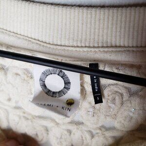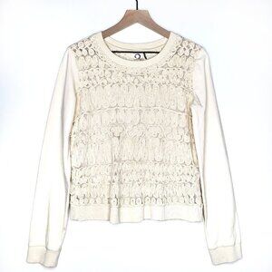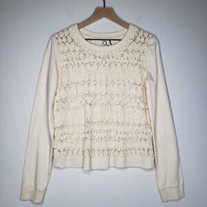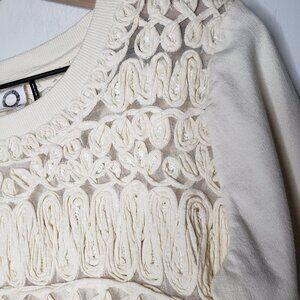 Akemi + Kin Anthro Mesh Rosette Sequin Sweatshirt Ivory S