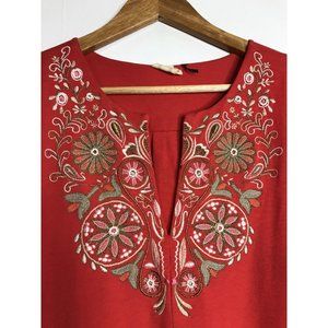 Akemi + Kin Anthropologie Binah Tank Sleeveless Blouse Red Beaded Embroidered Small
