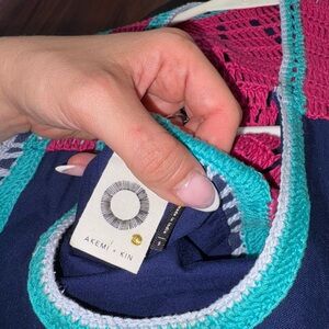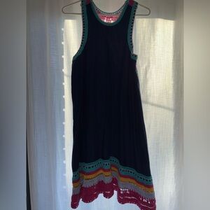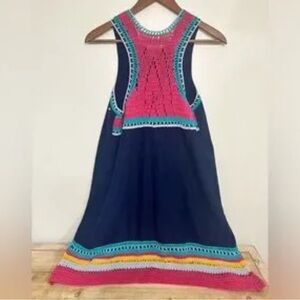 Akemi + Kin Anthropologie Blue Dress With Macrame Hem Back & Collar Size S