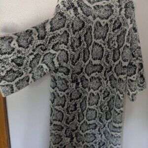 Over-sized leopard print cardigan in excellent condition. Very soft and comfortable with a slightly fuzzy texture. Sleeves are 3/4 length and cardigan has no button or tie closure. Sizing is one size fits all.