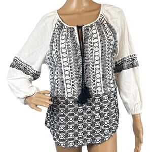 Akemi + Kin Anthropologie Embroidered Boho Chic Blouse Black White Size S