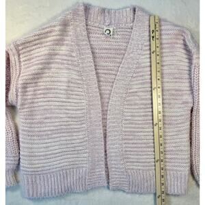 Soft, fuzzy lavendar-ish pink & ivory stripe open cardi