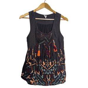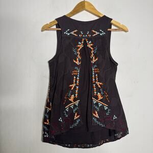 Akemi + Kin Anthropologie Rigmarole Shirt Womens Small Brown Boho Embroidered