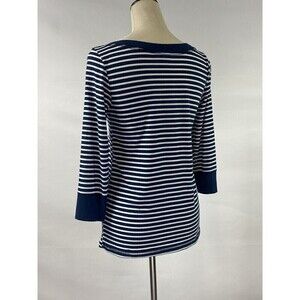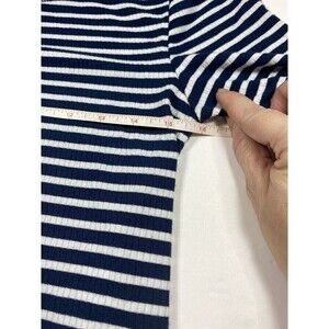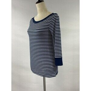 Akemi & Kin Anthropologie Tee Navy Blue White Breton Stripe Medium Boat Neck