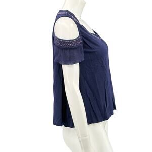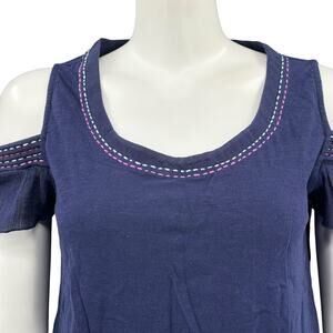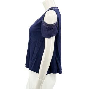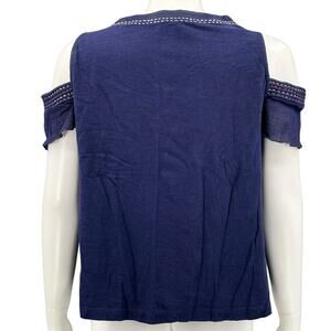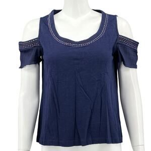 Akemi + Kin Anthropologie Top Womens Small Navy Cold Shoulder Short Sleeves Embroidered 100% Cotton Pullover Style OB562308 Boho Summer Casual