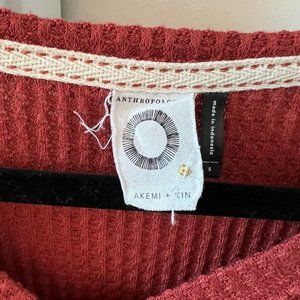 Akemi + Kin Anthropologie waffle knit tie front top (size small). Red color. Previously lightly worn.