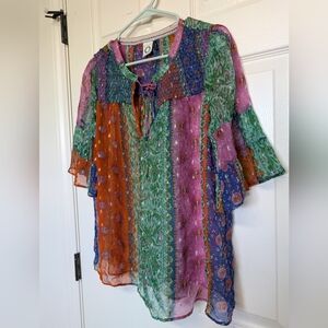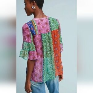 Akemi + Kin Antonella Patchwork Peasant Top Size M Anthropologie Boho Colorful