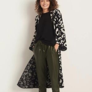 Akemi + Kin Open Cardigan One Size Black Cheetah Kimono Sleeve Long line Eyelash