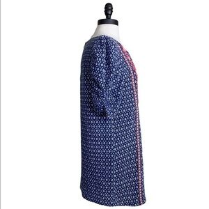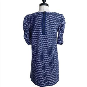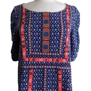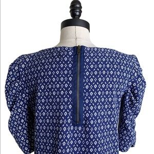 Anthropologie Akemi Kin embroidered Seva tunic top with puff sleeves Blue with beautiful multicolored bright embroidery Exposed back zipper Ruching on sleeves