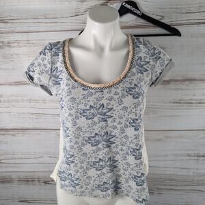 Akemi +Short Sleeve Floral Scoop Neck Tee Sz Small