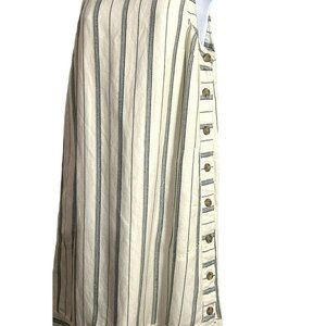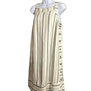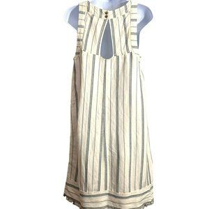 Akemi and Kin Anthropologie Women's Cream Navy Side Button Dress 6 Frayed Hem