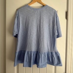 Add a touch of charm and ruffles to your wardrobe with this sky blue ruffled tee. Its soft fabric and elegant design make it a versatile choice for any outing.