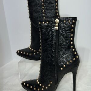 Akika black croc studded ankle boots/booties. Size 37. NWOT.