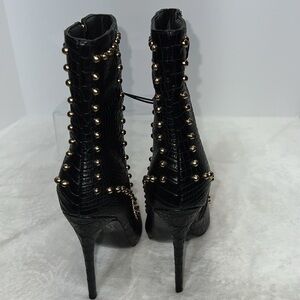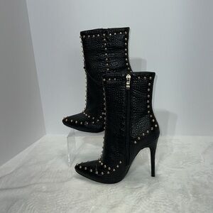 Akika black croc studded ankle boots/booties. Side zippers. Size 37. NWOT.