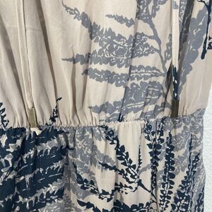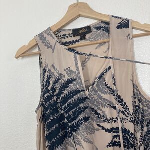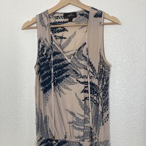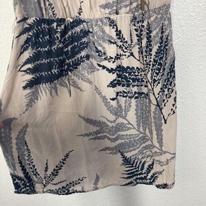 Akiko Dress Womens Small Silk Fern Print Sleeveless V Neck Beige Made in USA