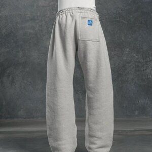 The product is a pair of men's sweatpants by the brand Akimbo. These regular fit sweatpants are in a stylish gray color and are made from a blended fabric for maximum comfort. They feature an elastic waist with adjustable waistband and pockets for convenience. Perfect for activewear, these heavyweight sweatpants are designed for easy care and all-day comfort. Made in Mexico, they are part of the Akimbo product line, making them a reliable choice for men looking for quality sweatpants. Brand new.