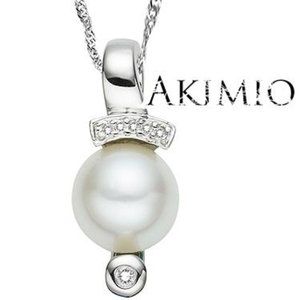 Platinum Over Solid Sterling Silver Diamonds and Pearl 18 Inch Designer Necklace