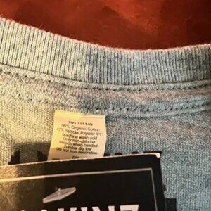 The Akinz hand-printed T-shirt features an intriguing octopus and ship design. Crafted from a blend of organic cotton and recycled polyester, this gray crew neck offers a comfortable and sustainable choice for casual wear.
