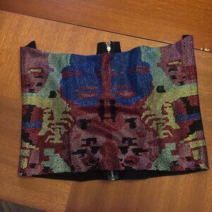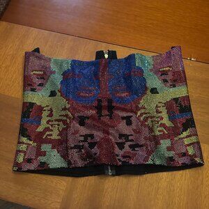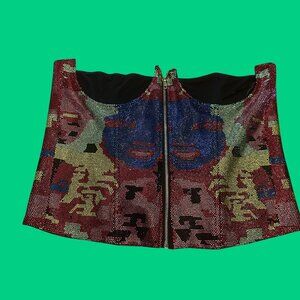 Akira 1XL Rhinestone Colorful Graphic Sequin Corset With Zipper Closure