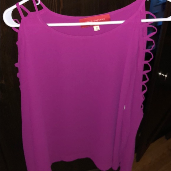 Magenta/purple, size medium, tags still attached, I don’t know why I never wore it, slits in the sleeves