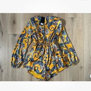 Akira ADMIT IT LONG SLEEVE PRINTED ROMPER WITH CUT OUT Sz S *G6