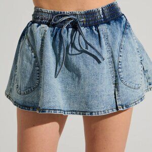 “Thanks, it has pockets!” The AKIRA Label Bella Baby Denim Mini Skirt is a cute ‘lil basic crafted from super soft, stretchy blue denim. It features a high-rise fit, an elasticized, drawstring waistband, two spacious side seam pockets (yay!), and slick built-in shorts for extra coverage. Style it with a cropped white tee, moto jacket, and knee-high stiletto boots for your next GNO. New without tags, hang tag still attached. Never worn. RARE! Sold out and impossible to find this cutie online! Women's size medium.