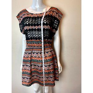 Akira Black Label Women Fit & Fare Mini Dress Sleeveless Zig Zag Multicolor SZ M