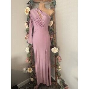 The Akira Blush Pink Long Sleeve Maxi Dress is a stylish and elegant choice for parties or cocktail events. This dress features a wrap keyhole front design, long sleeves, and a long length, making it perfect for the summer and spring seasons. Made from polyester, this size M dress in a solid pink color is designed by the brand Akira and is sure to make a statement at any special occasion.