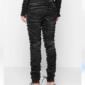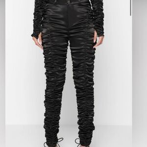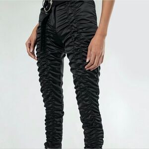 Stylish black ruched pants. Perfect for a chic look.