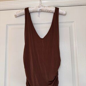 Akira Brown Ruched Midi Dress Size Medium Bodycon Coffee Chocolate