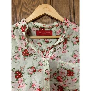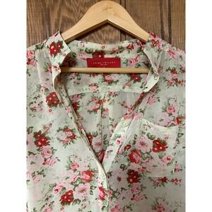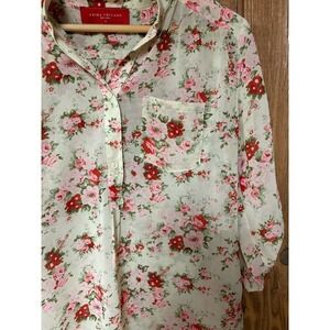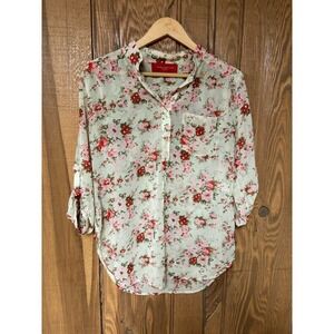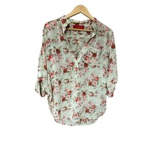 Akira Chicago Red Label Floral Sheer Popover Blouse with Roll Sleeves