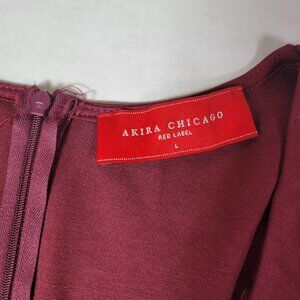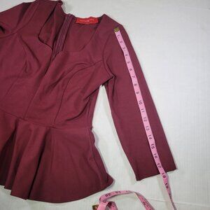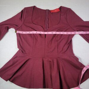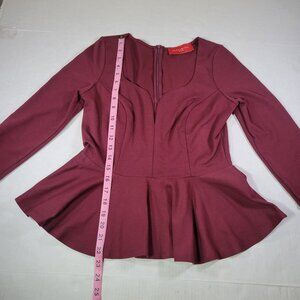 Akira Chicago Red Label Peplum Professional Top Burgundy Long Sleeves Size L