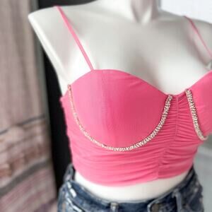 Akira Persephone Pink Mesh Rhinestone Trim Crop Tank Tank Top