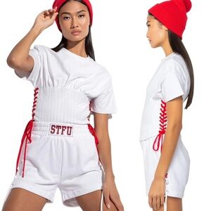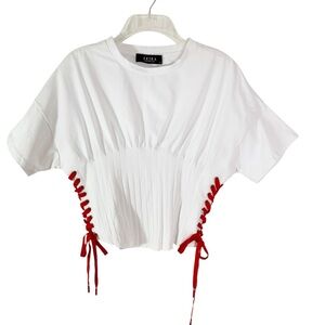 Akira Read My Thoughts Lace Up Detail T Shirt White size M NWT