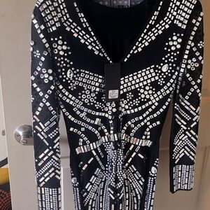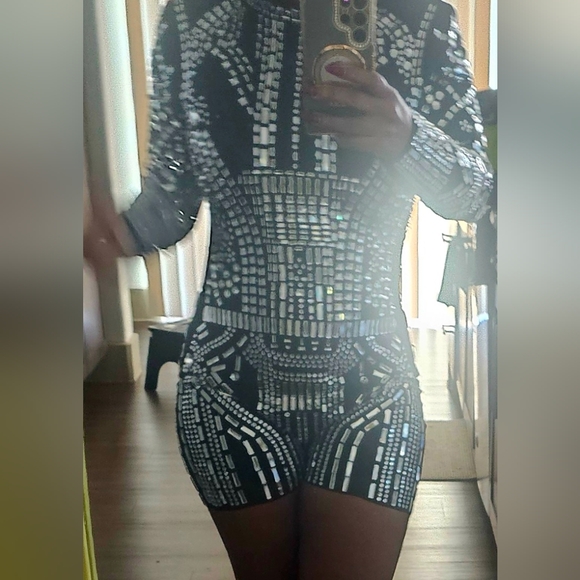 Gorgeous brand new with tags attached (only tried on) show stopping rhinestone romper. Wear to Beyonce concert and turn heads!!!! I am asking full price as this is completely sold out and I really want it but have nowhere to wear it! This is a size medium but fits like a small.