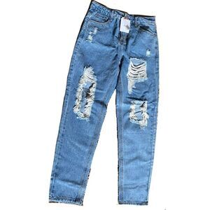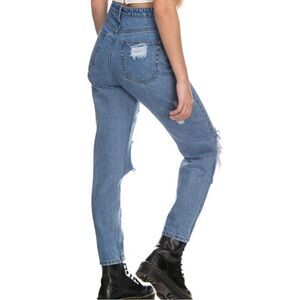 Akira Ripped Distressed Blue High-Waist Mom Jeans NWT M